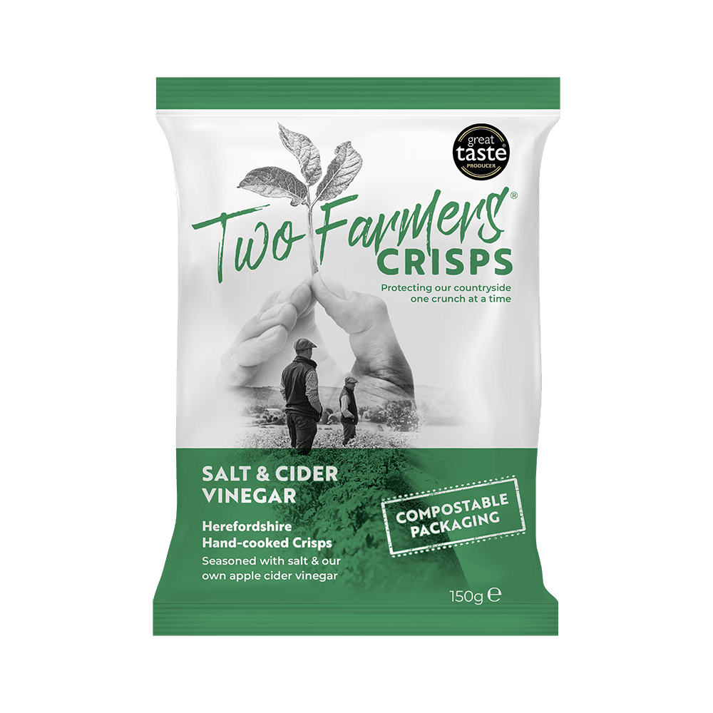 Two Farmers began with the vision of making delicious hand-cooked crisps that celebrate the true flavours of Herefordshire, whilst protecting our beloved countryside with a 100% compostable packet.